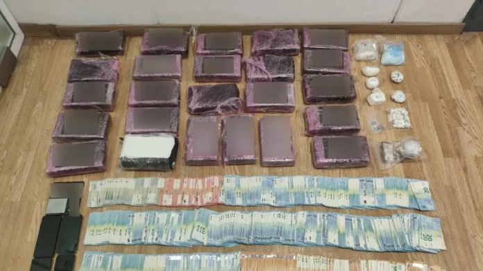 Συνολικά, στο πλαίσιο των ερευνών, βρέθηκαν και κατασχέθηκαν 27 κιλά και 398 γραμμάρια κοκαΐνης, 121,8 γραμμάρια κάνναβης, ηλεκτρονική ζυγαριά ακριβείας, 56.080 ευρώ, 2 Ι.Χ. αυτοκίνητα, 2 μοτοσικλέτες και 4 κινητά τηλέφωνα.