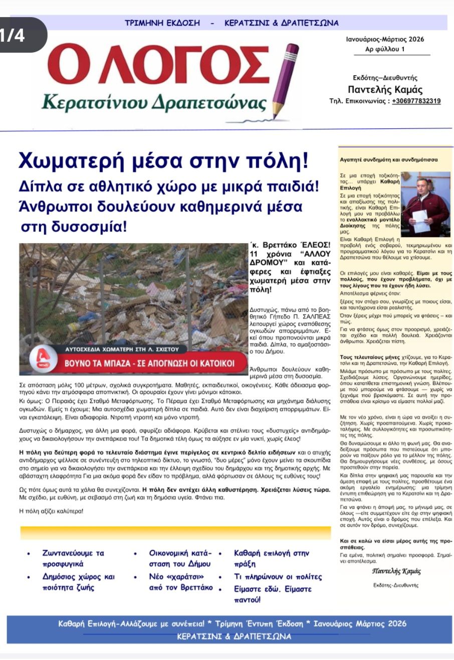 Ο Λόγος Κερατσινίου – Δραπετσώνας δεν δημιουργήθηκε για να ωραιοποιεί. Δημιουργήθηκε για να φωτίζει, να ελέγχει, να αποκαλύπτει και να προτείνει. Να δίνει φωνή σε αυτούς που συνήθως δεν έχουν.